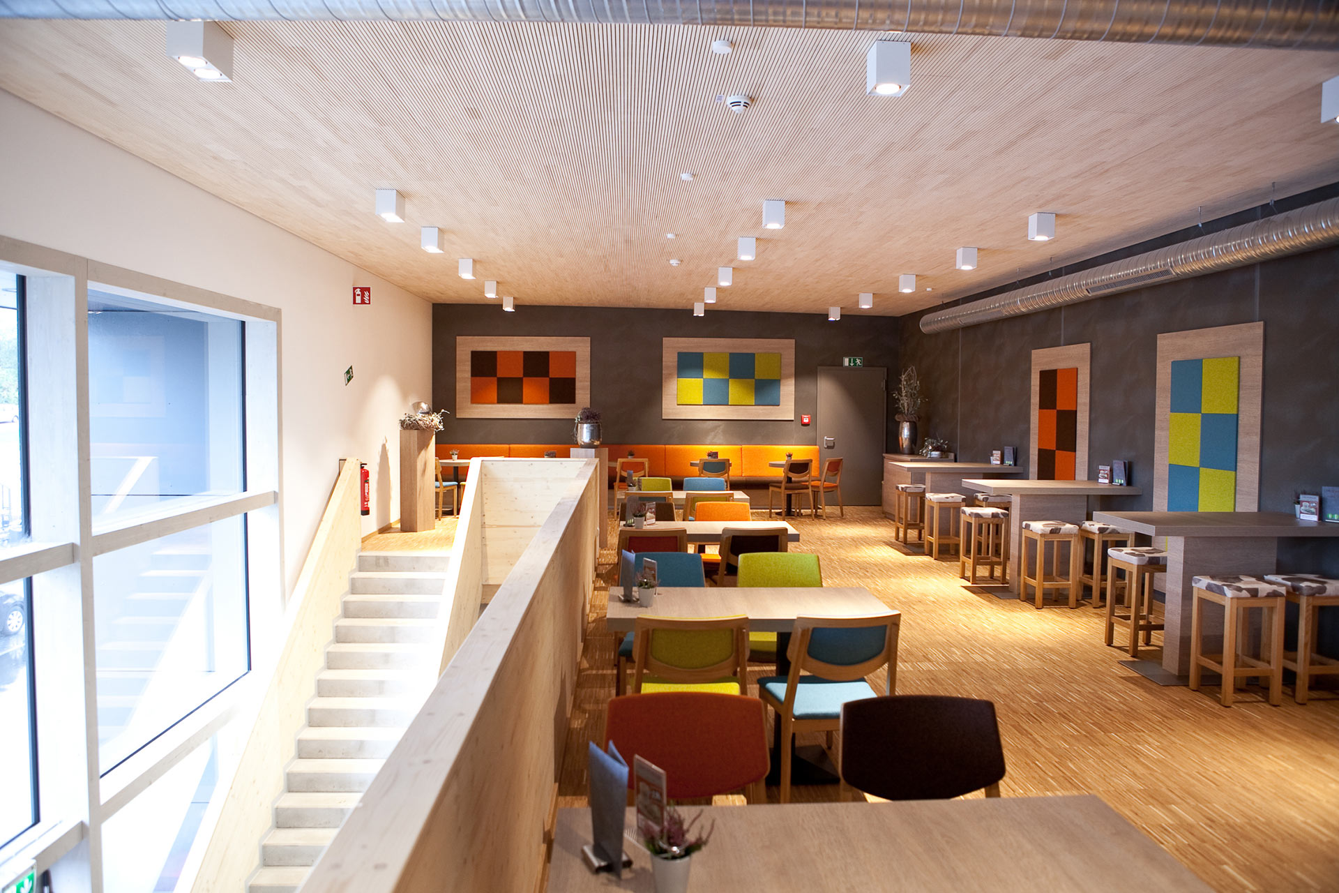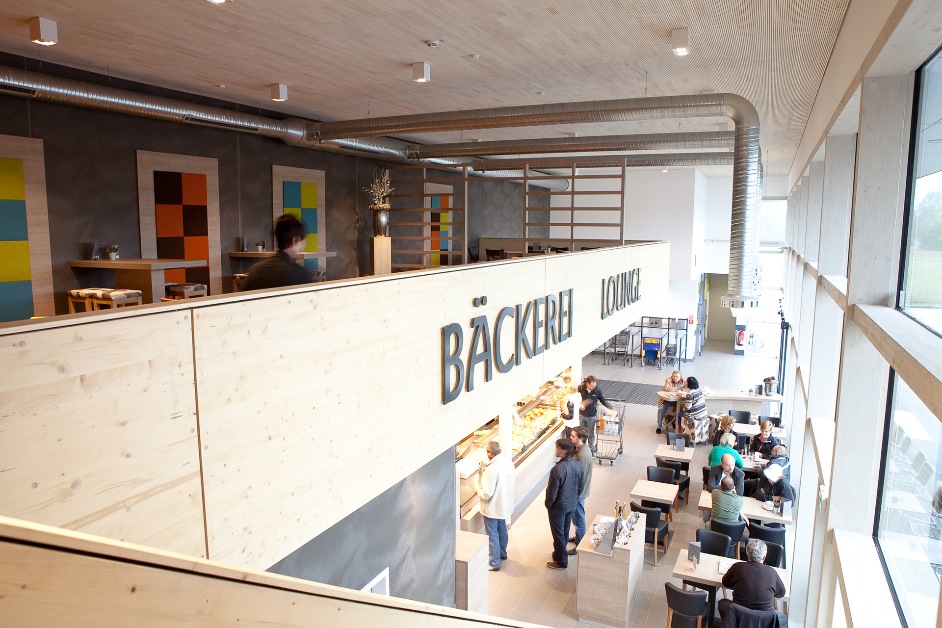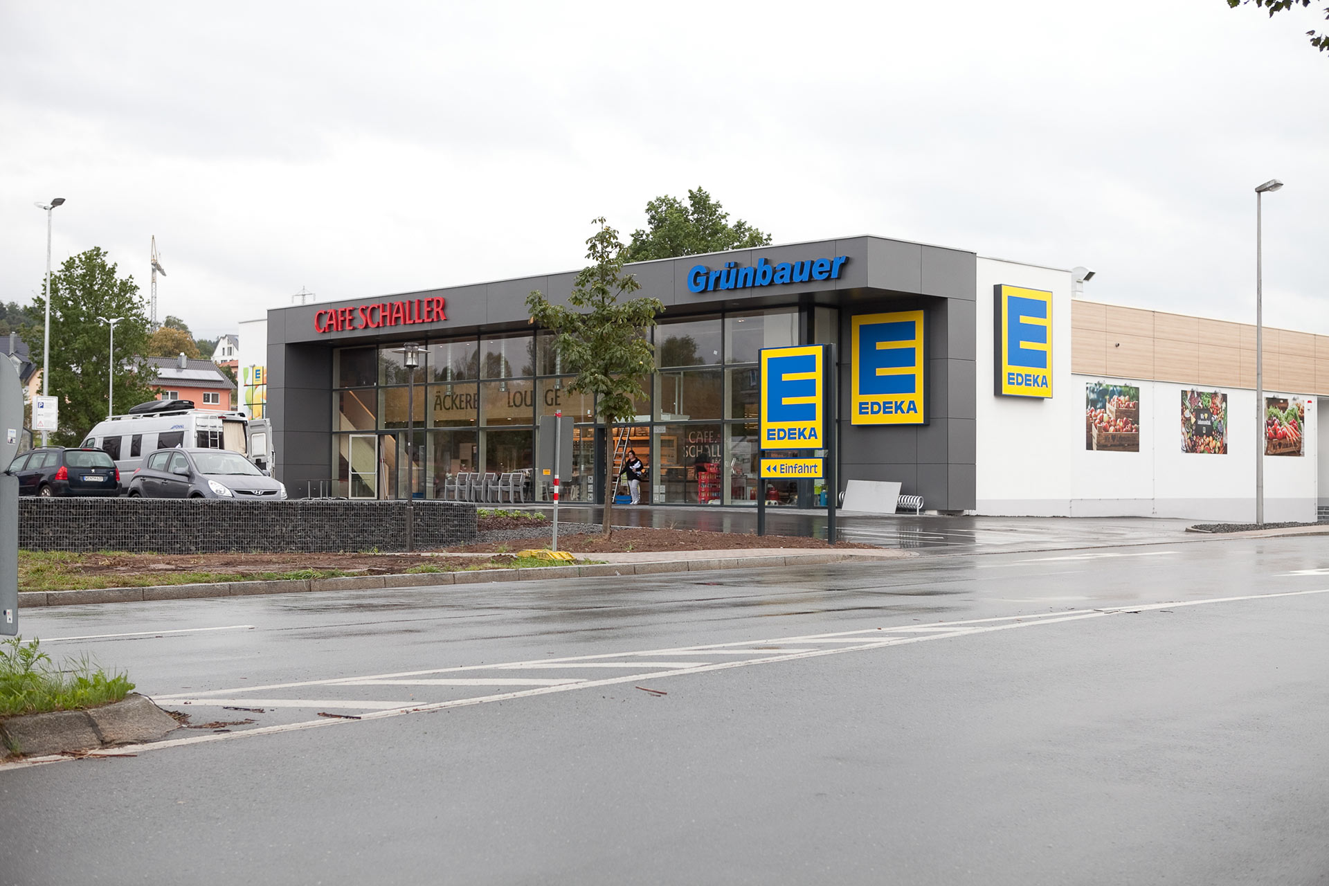 Der neue EDEKA-Einzelhandelsmarkt (Leistungsphasen 1 – 8) markiert den Eingang in das junge Baugebiet im Weidener Osten direkt an der Südosttangente. Der Baukörper öffnet sich mit dem Rücken zum Wohngebiet, nach Norden zur Tangente und zur Stadt. Der Verkaufsraum wurde konventionell in Massivbauweise errichtet, der Windfang mit Bäcker und Café erstmals in der Supermarktarchitektur in Holzbauweise. Das obergeschossige Café und die Lounge schweben über der Bäckerei und bieten dem Kunden einen großzügigen und warmen Empfang.
